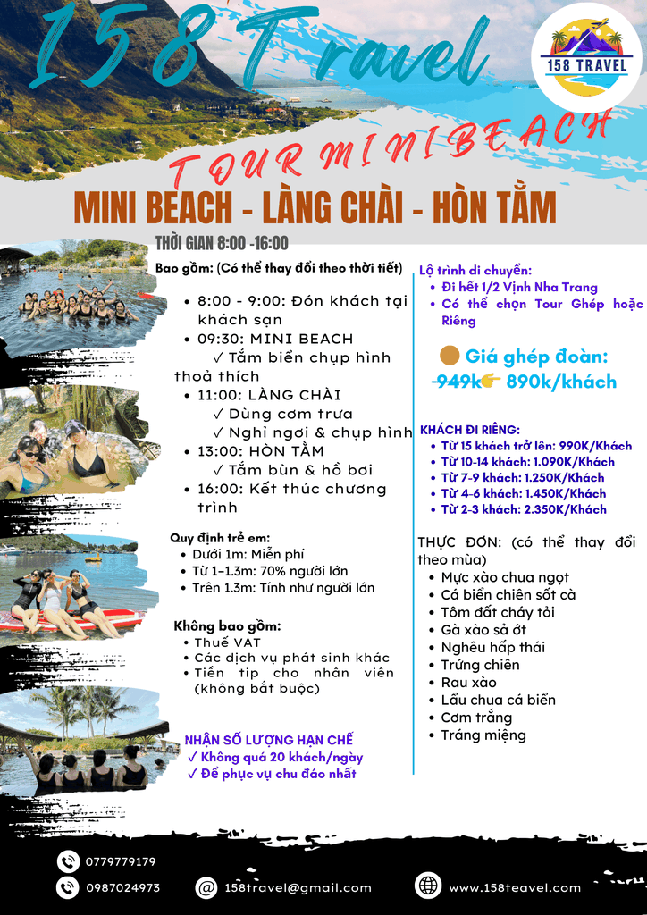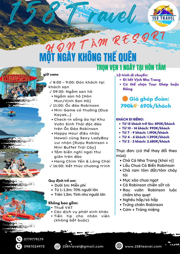 BẢNG GIÁ DỊCH VỤ HÒN TẰM RESORT NHA TRANG