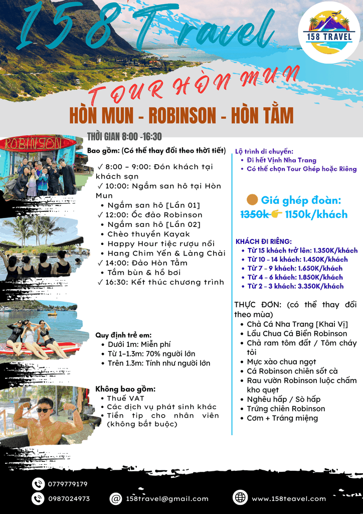 - Đối với những gói có kèm ăn trưa, Quý Khách vui lòng không được phép huỷ booking sau 10:00 (sẽ bị tính phí 50%)