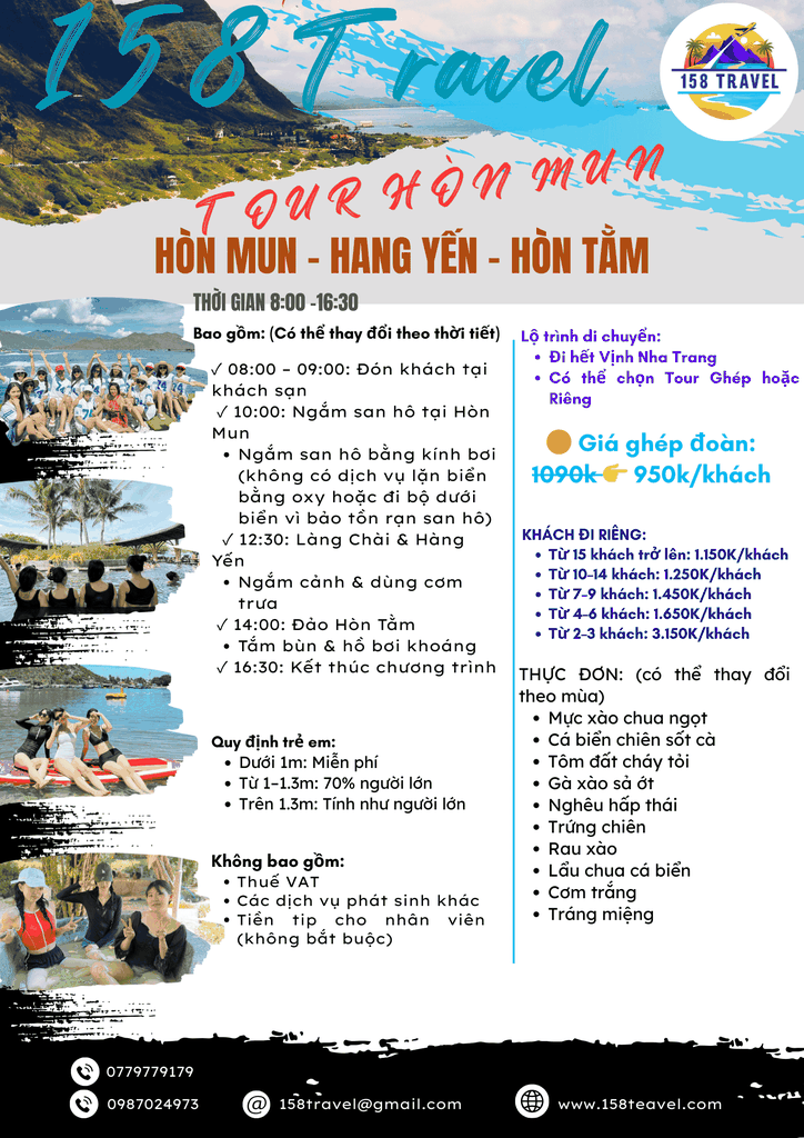 Tour 3 đảo Hòn Mun – Hang Yến – Hòn Tằm là hành trình đặc sắc kết hợp giữa khám phá đại dương, tìm hiểu thiên nhiên hoang sơ và tận hưởng không gian nghỉ dưỡng sang trọng bậc nhất Nha Trang. Đây là lựa chọn lý tưởng cho những ai muốn trải nghiệm trọn vẹn vẻ đẹp vịnh Nha Trang trong một ngày.