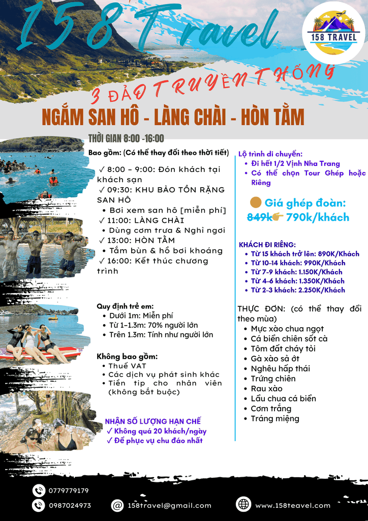 Tour Làng Chài – San Hô – Bãi Tranh sẽ mang đến cho bạn một ngày đầy trải nghiệm thú vị, kết hợp khám phá – thưởng thức – thư giãn, biến chuyến đi Nha Trang thành kỷ niệm khó quên.